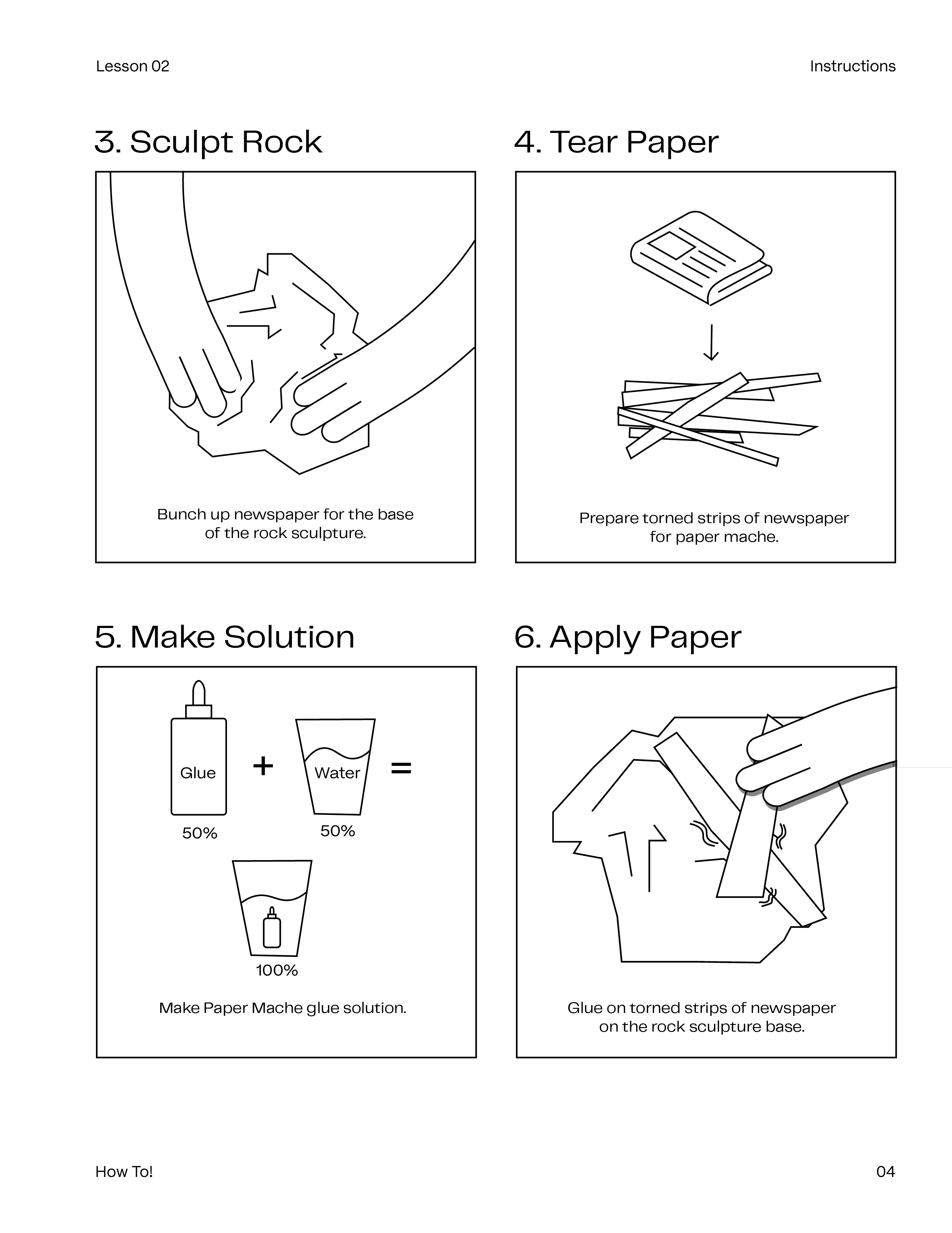 Students choose a rock, research its physical properties, and sculpt a 3D papier maché sculpture that represents their rock's characteristics.